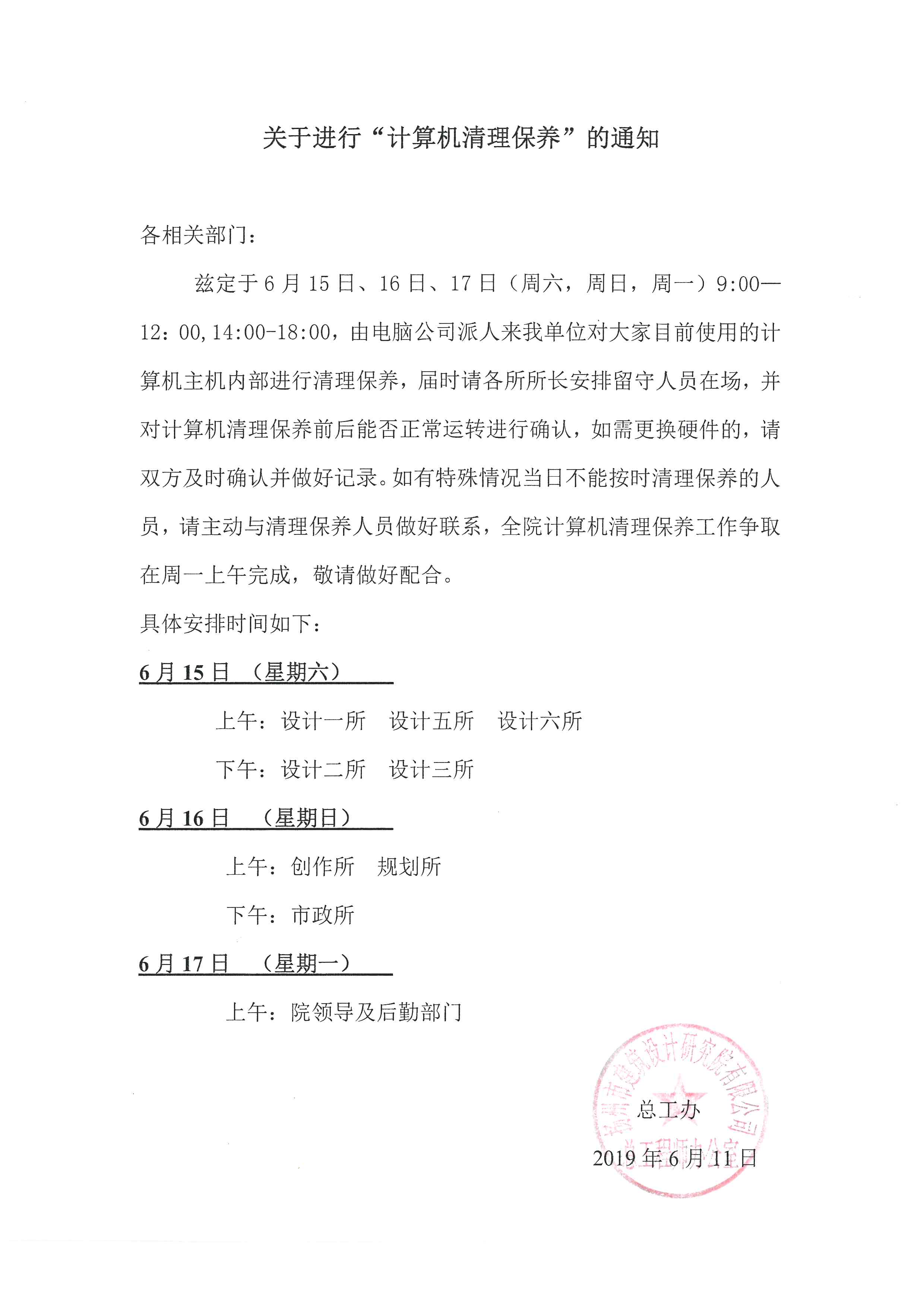 ·關(guān)于進(jìn)行“計(jì)算機(jī)清理保養(yǎng)”的通知 [2019-06-11]